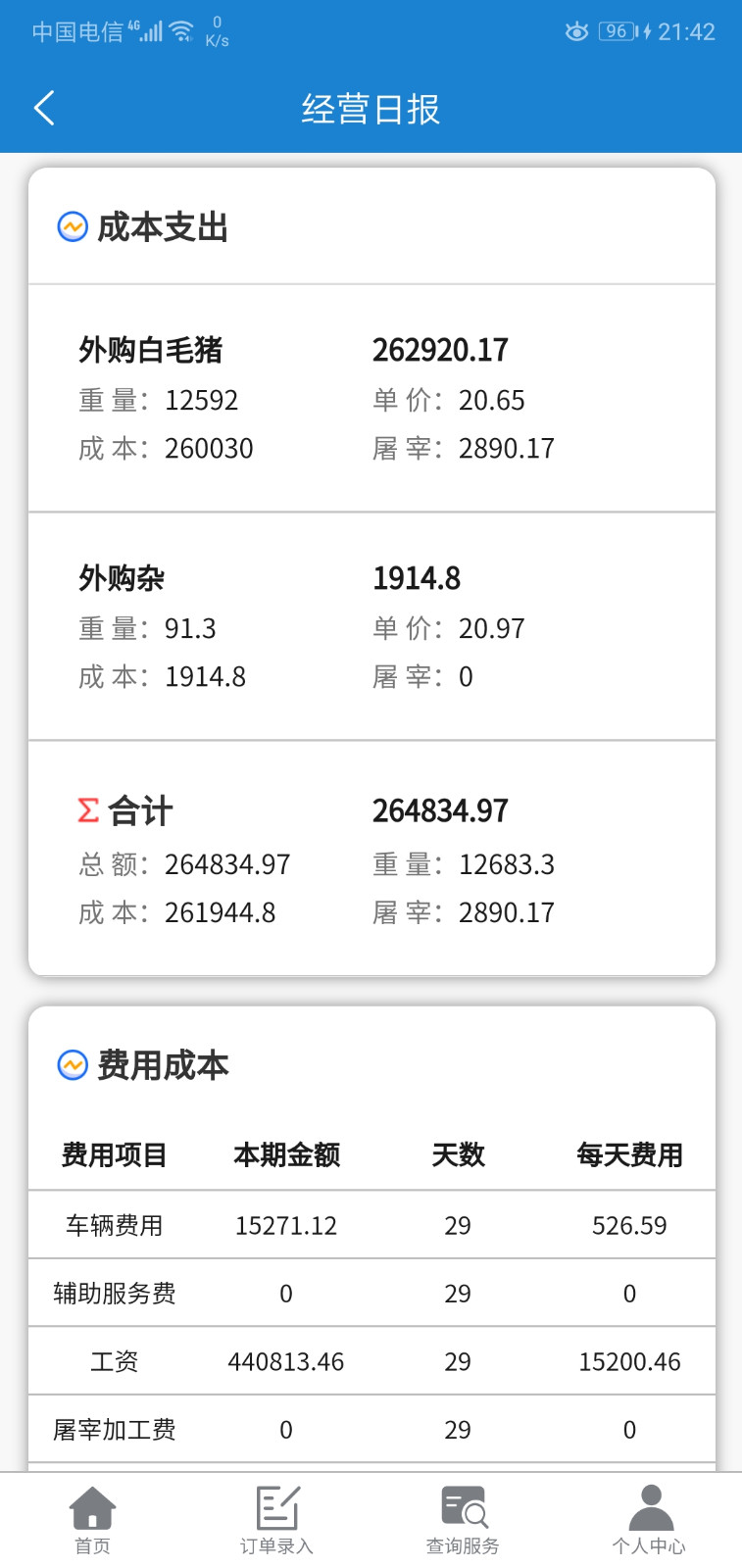 一款用于服务肉联厂管理的轻量级APP,提供生猪采购、生猪屠宰、肉品销售、订单结算整个生产、交易流程的功能管理;并且具有在线下单和接单功能,快速形成交易过程,让企业生产管理水平得到提升,为客户创造简单、便捷的服务。APP包括平台管理端和客户服务端,根据角色不同,使用的权限也不一样,既便于业务员提供快捷服务,也让客户对自己订单情况一目了然。