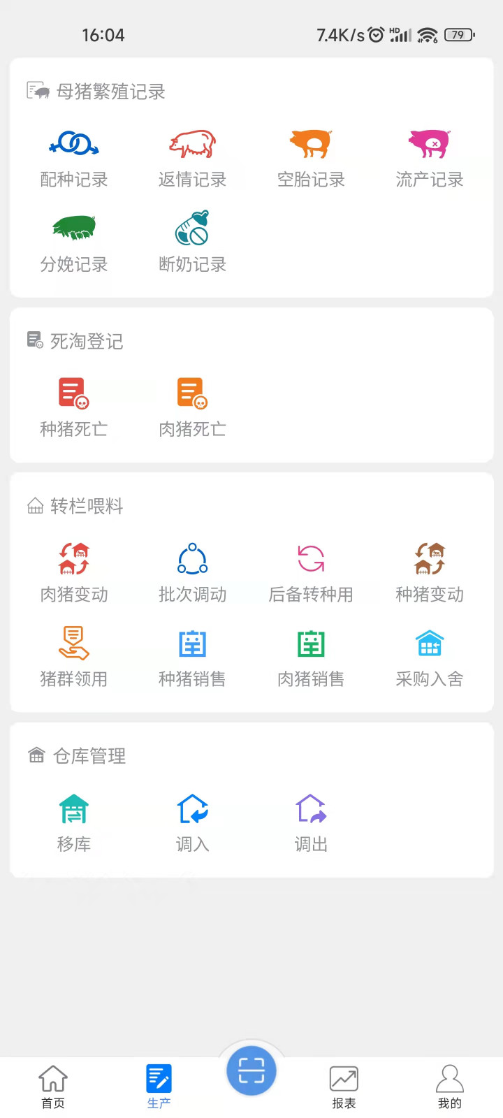 惠顺养殖APP包括当前动态存栏、待办事宜和预警提示,搜猪功能、生产日报、存栏、分娩和断奶报表及相关分析报表呈现功能。新版还添加了单据录入 扫码录入。系统提供每一头繁殖母猪生长、生产历程,帮助技术人员随时了解每一头母猪的情况,达到精准护理、健康养殖的工业化养猪的工作要求。