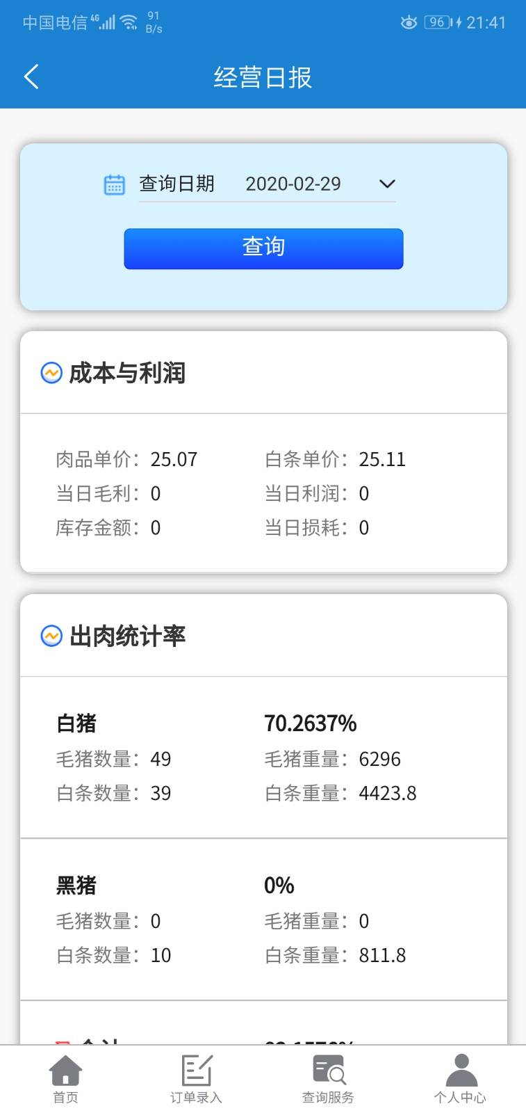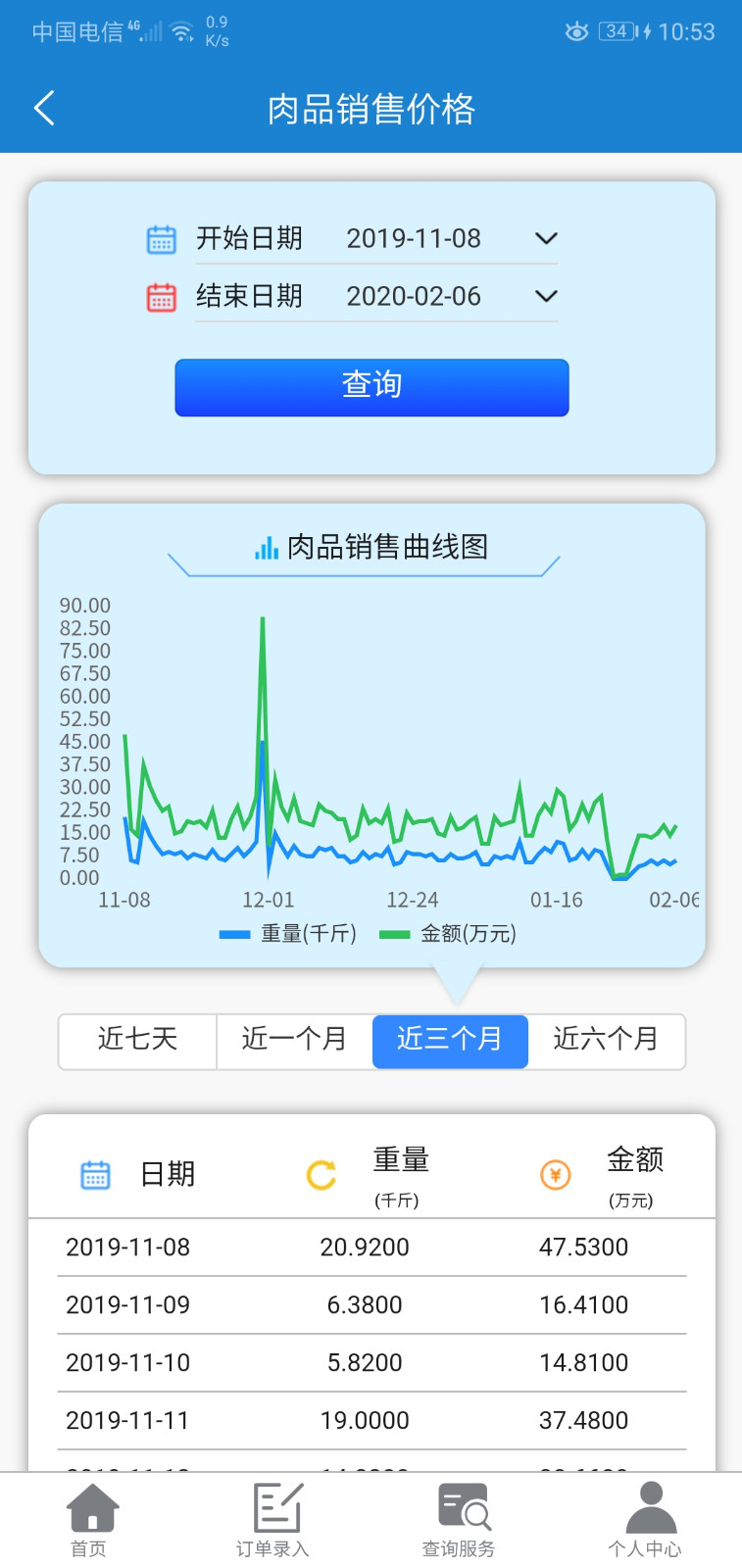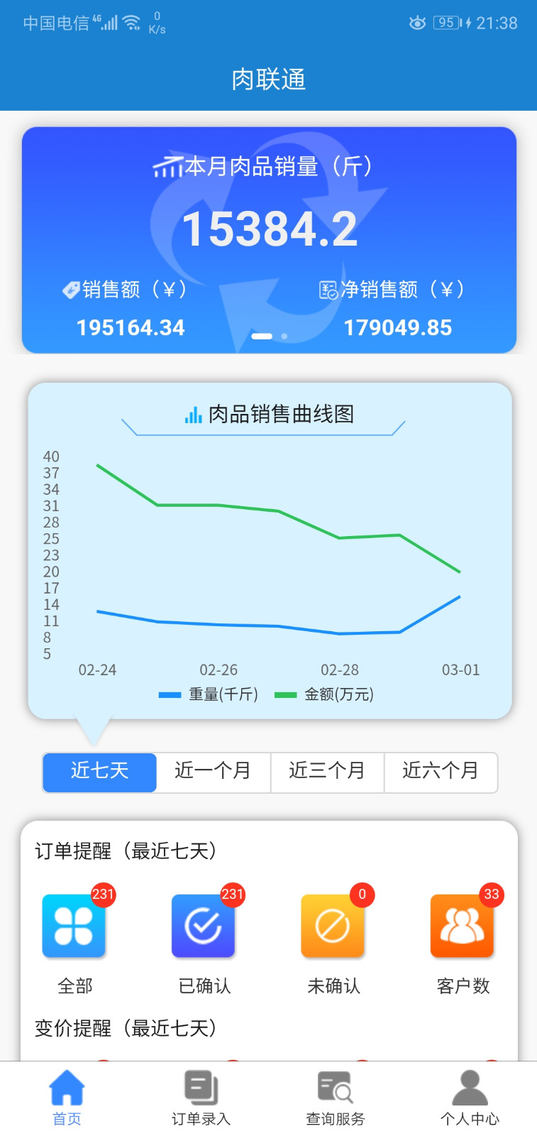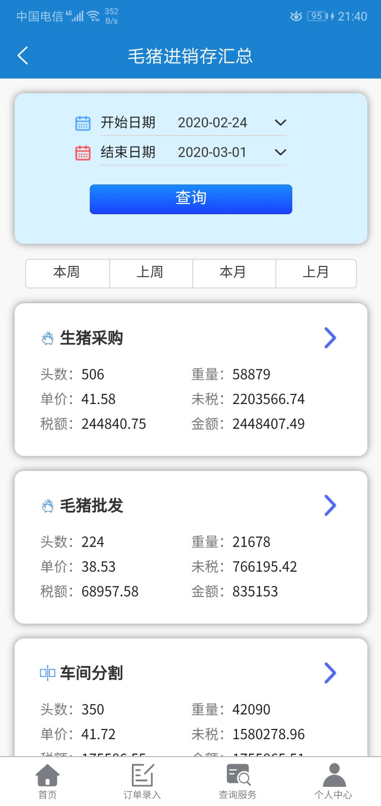 一款用于服务肉联厂管理的轻量级APP,提供生猪采购、生猪屠宰、肉品销售、订单结算整个生产、交易流程的功能管理;并且具有在线下单和接单功能,快速形成交易过程,让企业生产管理水平得到提升,为客户创造简单、便捷的服务。APP包括平台管理端和客户服务端,根据角色不同,使用的权限也不一样,既便于业务员提供快捷服务,也让客户对自己订单情况一目了然。